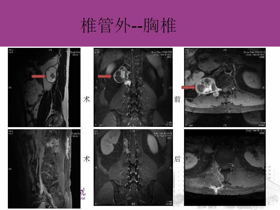其实,有条件的话,对于高度怀疑脊髓肿瘤的患者,应该把全部节段的脊髓都做一下核磁共振,避免遗漏。这是因为有些肿瘤分散生长,比如多发性神经根瘤、多发性血管母细胞瘤等。
