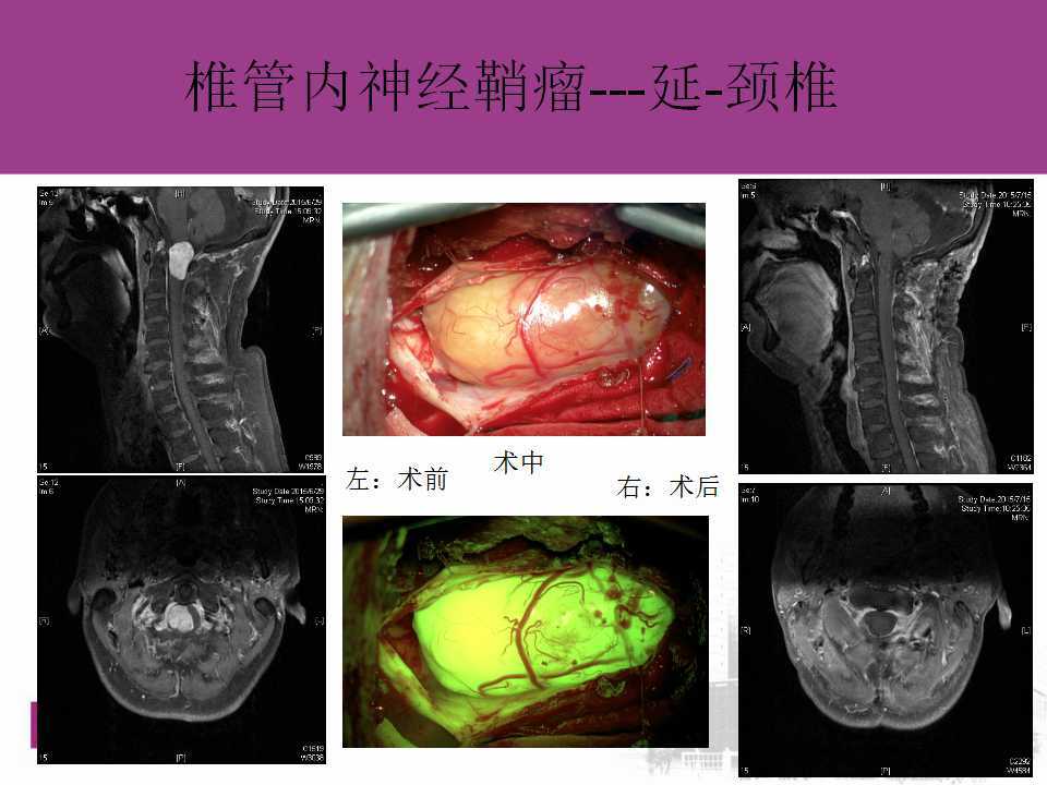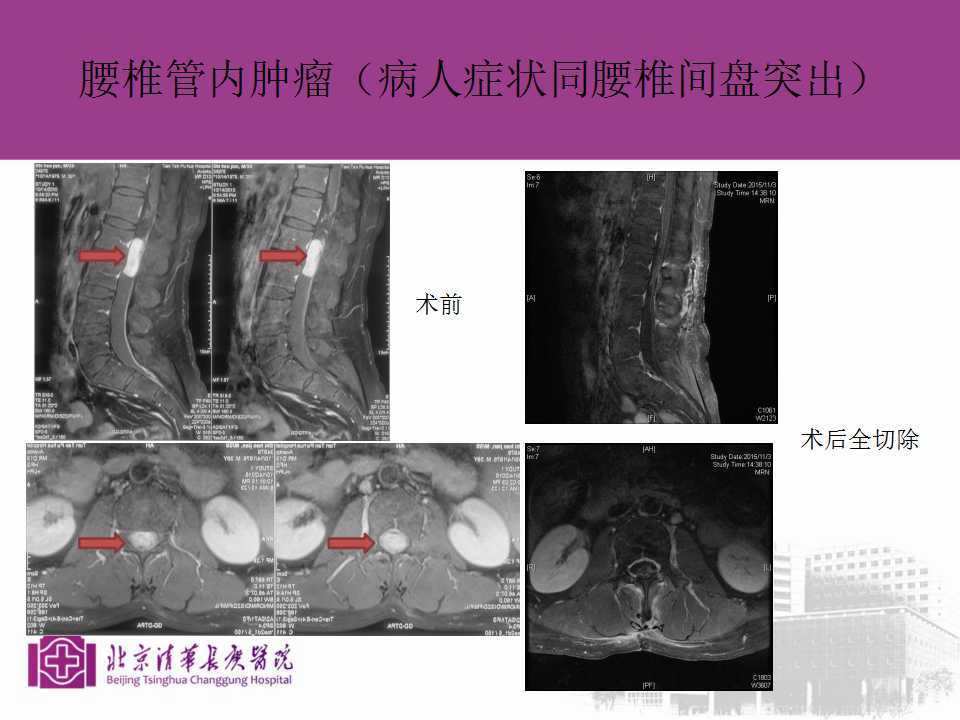 比如下面几张磁共振显示的肿瘤:包括颈/腰椎神经鞘瘤,髓内室管膜瘤等等,最早的症状类似于颈椎病和腰椎病,往往发现较晚,患者肿瘤生长巨大或者出现瘫痪等症状了才来就诊,导致手术难度加大。