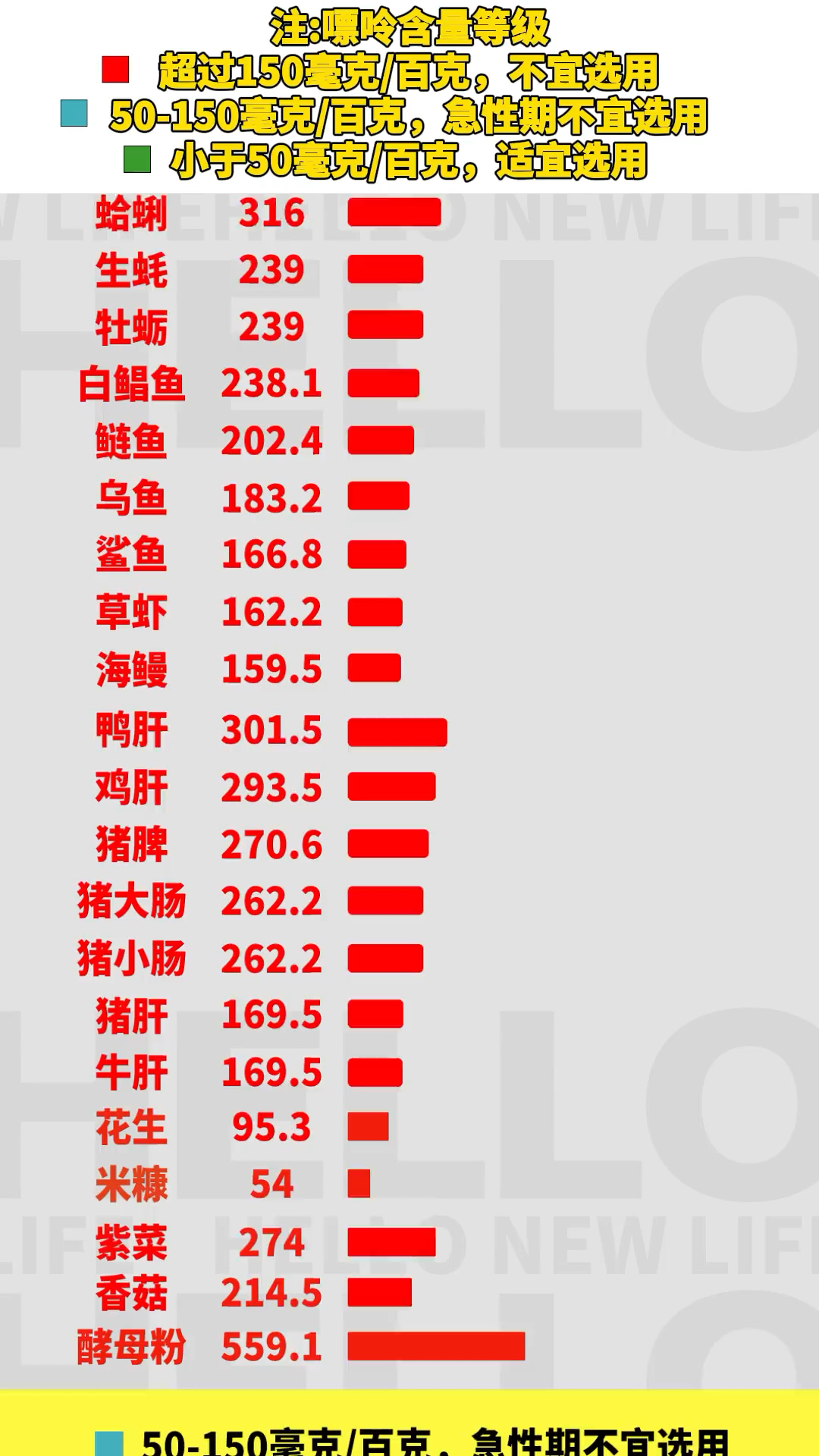 低中高嘌呤食物合集,高尿酸/痛风必看!!