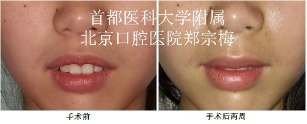 严重骨性原因露龈笑必须通过正颌手术才能矫正,但有些人不存在骨性咬合问题,经正畸或牙周手术治疗不能够矫正,或者不接受其他治疗方法的求美者,可以通过在口内上颌前庭沟做切口,找出两侧的上唇方肌和提肌,切断并调整止点,并适当延长系带部位的粘膜组织,使上唇松弛,并通过术后的唇部肌功能的训炼,从而有效增加上唇长度,达到矫正的目的。