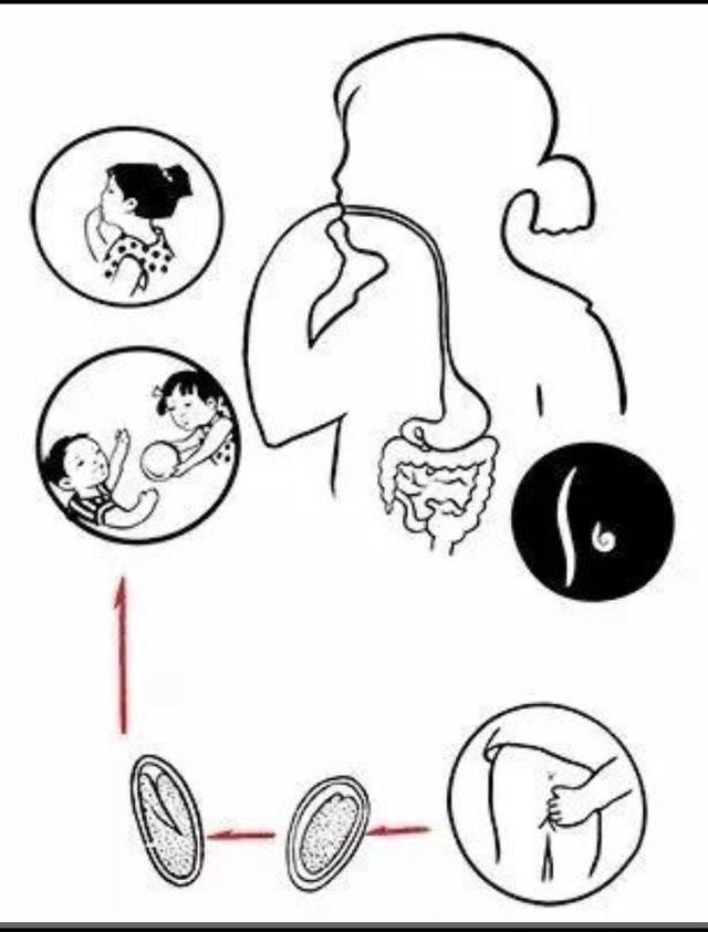 该病可在家庭或集体机构中引起流行。其传播途径是肛门-手-口。雌虫常在夜间受到低温的刺激由肛门爬出,在肛门或会阴皮肤皱褶部爬动和产卵,几分钟内可产卵数万个,卵经手指、衣服、食物、尘埃、空气等途径进入口腔,至十二指肠或小肠内发育为成虫,并寄生于盲肠,有时肛周孵成的幼虫又可返回上行进入肛门,形成反复感染。